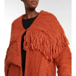 This chunky cardigan from Stella McCartney is made using different needlework techniques. Knitted from alpaca wool and wool-blend yarn, it’s finished with long fringes.