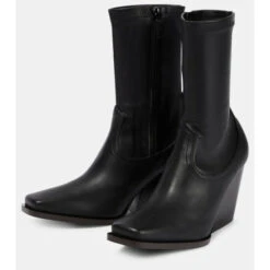 These boots are made from Alter Mat – a signature Stella McCartney fabric that feels like real leather and stretches to fit. They have a ankle-length silhouette, slanted Cuban heels and cowboy boot detailing.