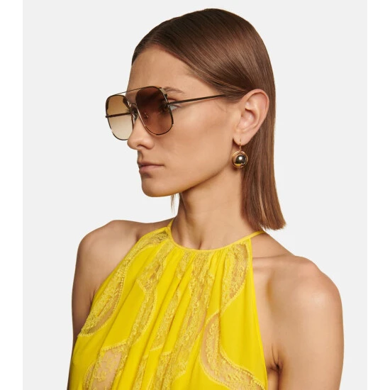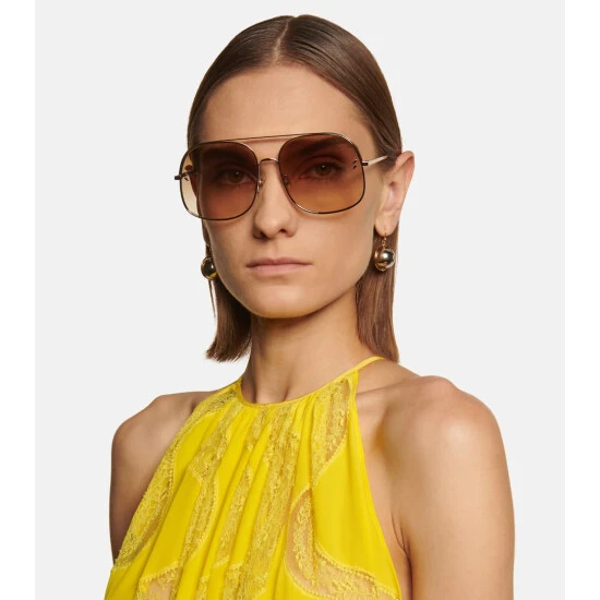 Although not instantly apparent, these golden sunglasses are subtly perforated with Stella McCartney’s signature logo running across the brow. Made with a slender metal frame, they have a square silhouette with gradient tinted lenses and tortoiseshell temple tips.
