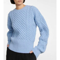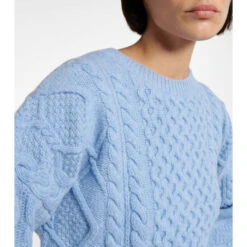 Stella McCartney’s knitwear gets a lot of style mileage – it’s seasonless and versatile. This light blue sweater has a crewneck, dropped shoulders, and a beautiful cable-knit pattern throughout.