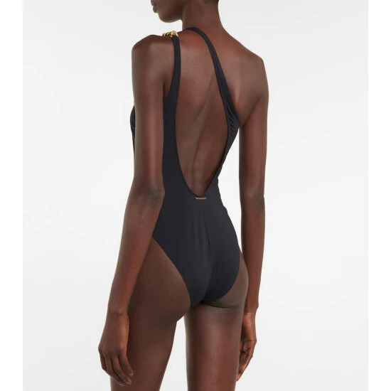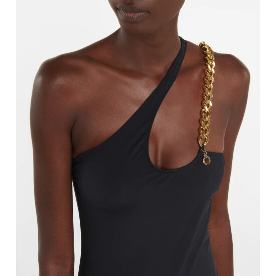 Add intrigue to spa days and vacations alike with this swimsuit from Stella McCartney. It has an asymmetric one-shoulder neckline and statement chain-link strap, inspired by the label’s Falabella bags.