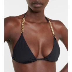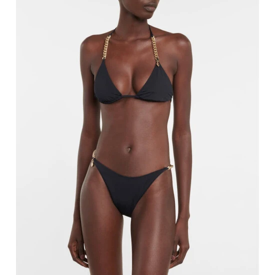 Stella McCartney adapts its famed whipstitched chain-links to this bikini tops. The classic triangle style secures with a self-tie halterneck. Pair with the matching bikini bottoms.