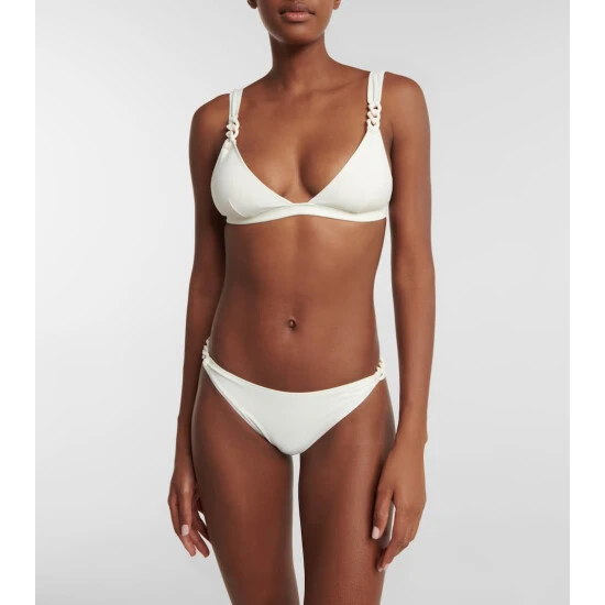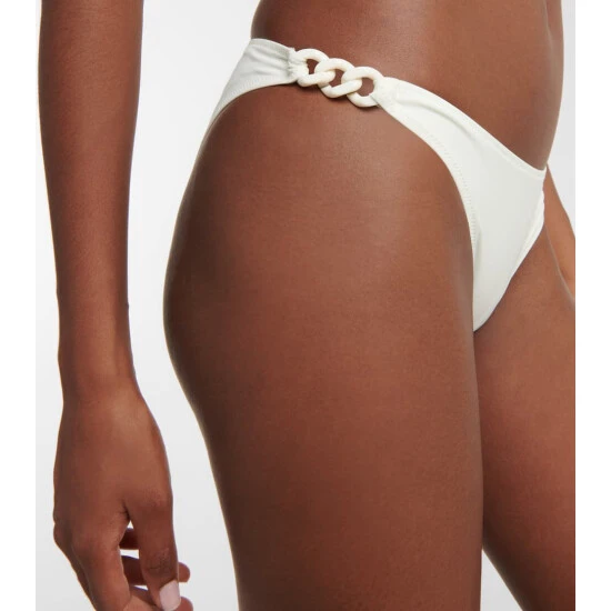 For a subtly elegant vacation look, opt for these low-rise bikini bottoms from Stella McCartney. It’s fitted with white-toned chainlink trims on the side and offers minimal coverage. Style with the matching bikini top.