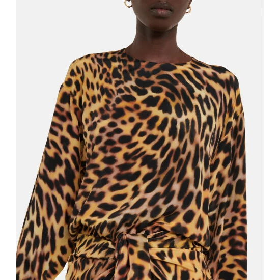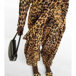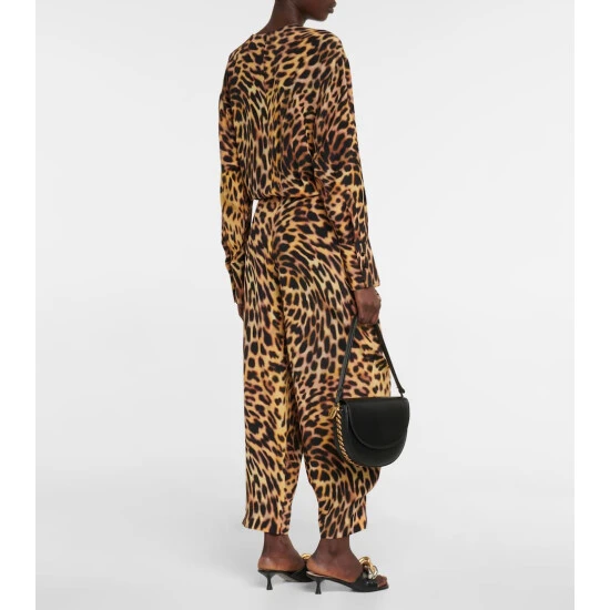 Stella McCartney’s latest offerings enliven desk-to-dinner dressing with a striking cheetah print. Made from silk, this crewneck jumpsuit has wrap detailing at the waist and a relaxed silhouette.