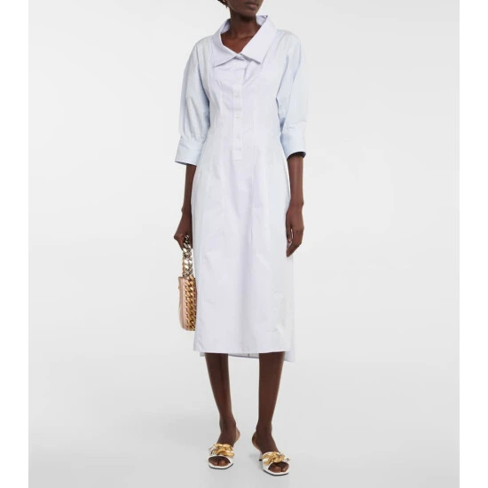 Inspired by classic tailoring, this midi shirt dress from Stella McCartney is a versatile wardrobe essential. It’s made from breathable cotton poplin and features pinstripe detailing in the centre for a timeless finish.