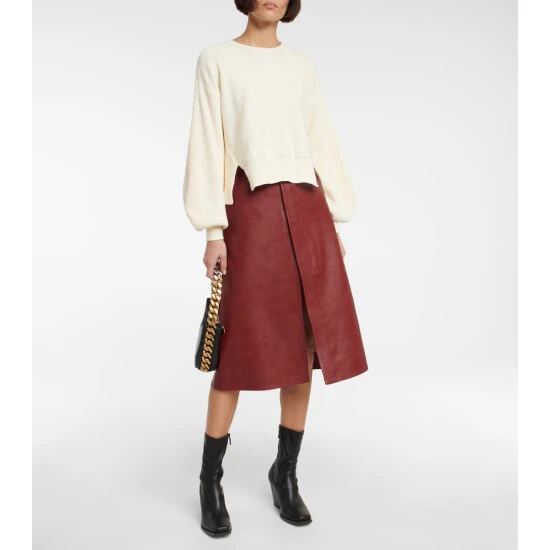 This Stella McCartney sweater is defined by exaggerated balloon sleeves. Knitted from pure cotton, this piece has dropped shoulders, a cropped front, and ribbed detailing.