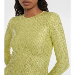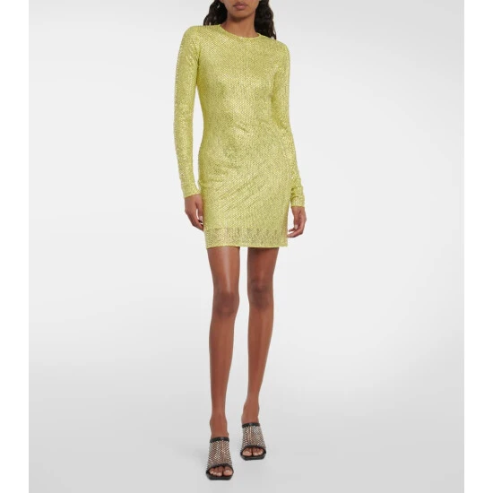Shine brightly through the night at your next event in this minidress from Stella McCartney that features all-over crystal sequins. Made in Italy, this head turning design comes with long sleeves and fits close to the body.