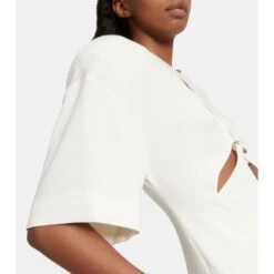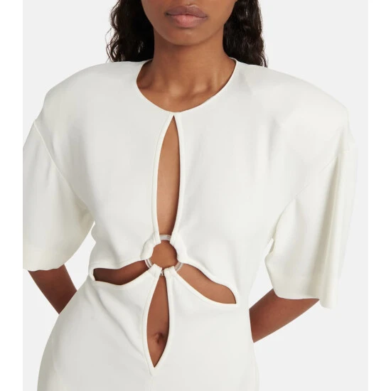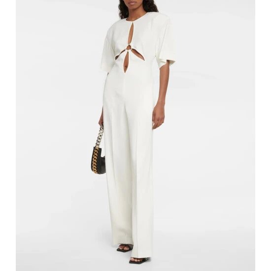 Stella McCartney adds visual interest to this simple jumpsuit with the cut-outs at the front. Made in Italy, this design comes with short sleeves and straight legs.