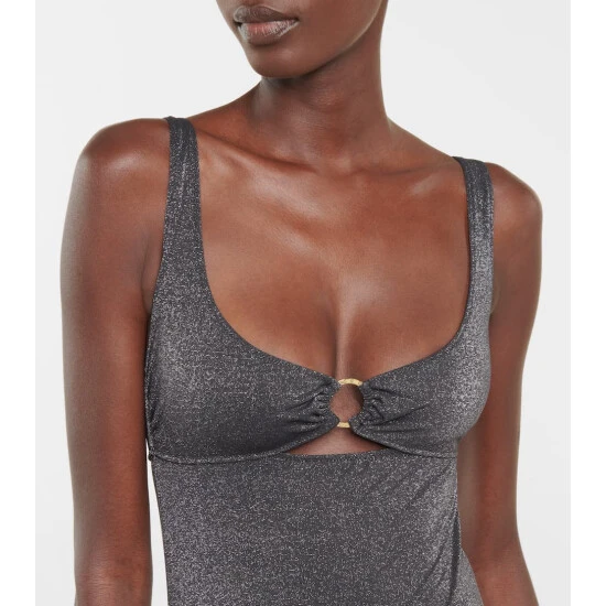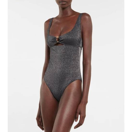 Enriched with metallic fibers, this swimsuit from Stella McCartney will sparkle in the sunlight. It features a logo-engraved O-ring and cutout detailing.