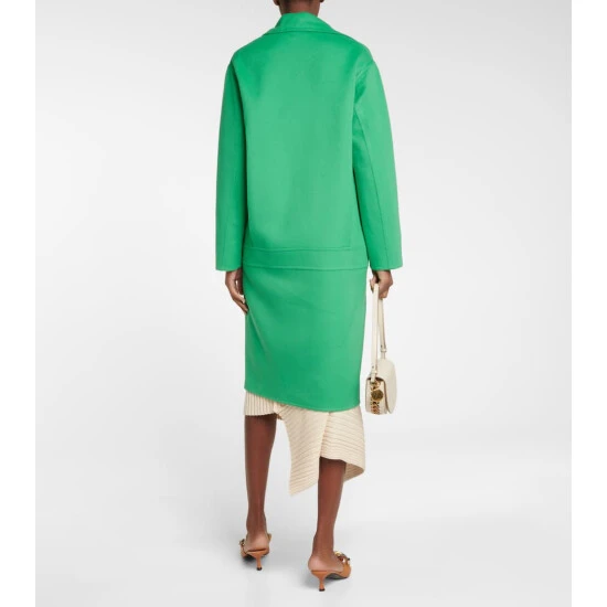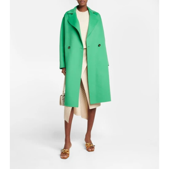 This classic green coat from Stella McCartney is a wardrobe investment. Timeless in silhouette, luxurious in fabrication, it’s made from pure, mid-weight wool with a double-breasted front. The relaxed cut and full sleeves make it ideal for layering.
