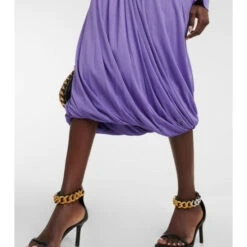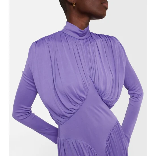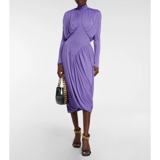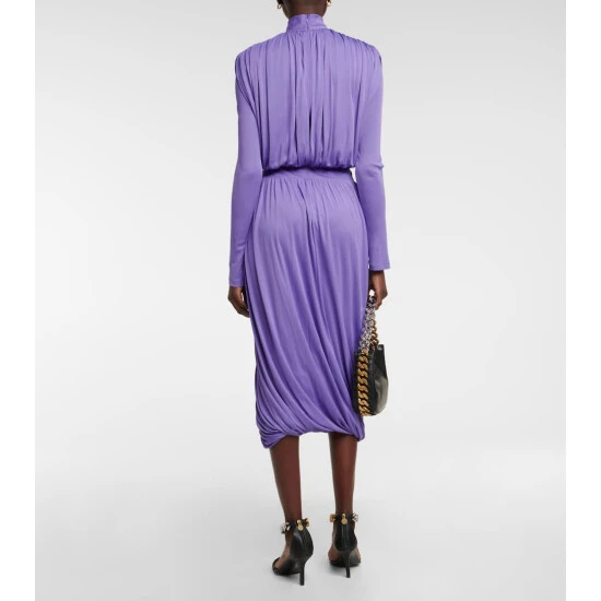 This Stella McCartney midi dress is defined by a softly draped bodice and skirt connected by a diamond-shaped waist panel. Made from jersey, an elasticated hemline and tight-fitting sleeves create an elegant contrast between volume and silhouette.