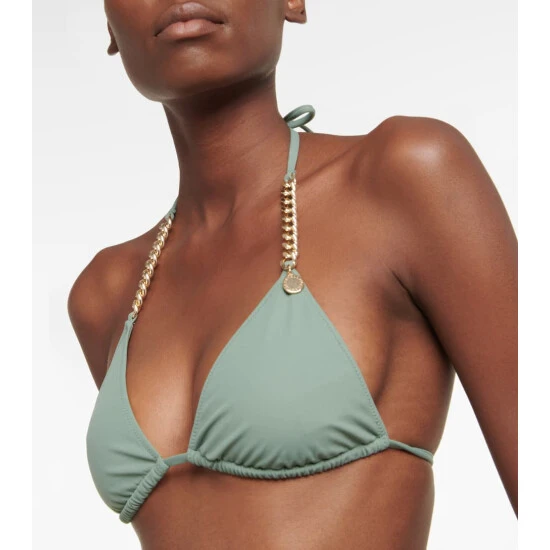 This glamorous bikini top from Stella McCartney has golden chain embelllishment.