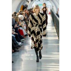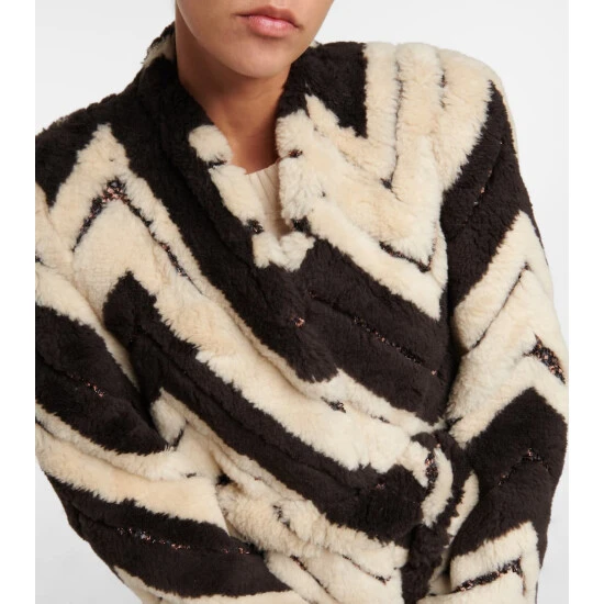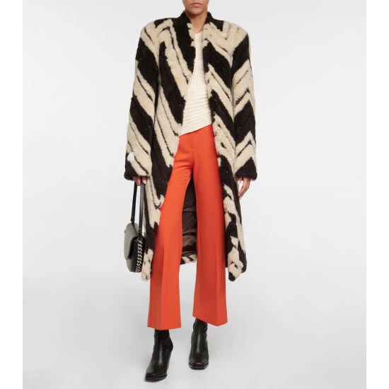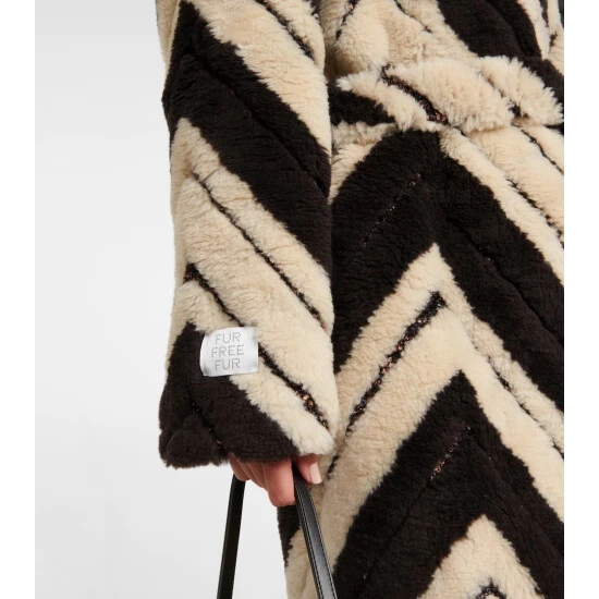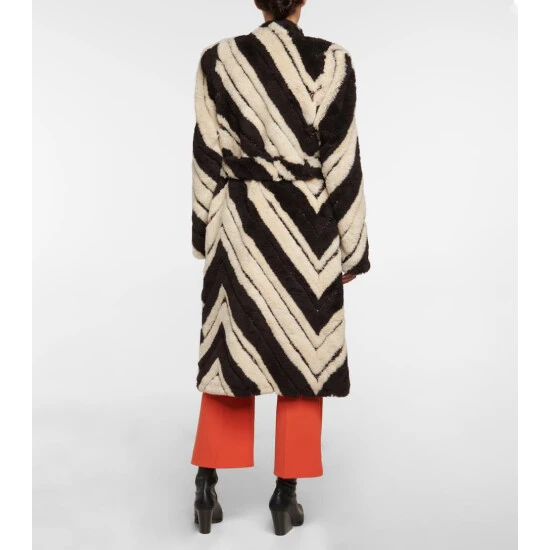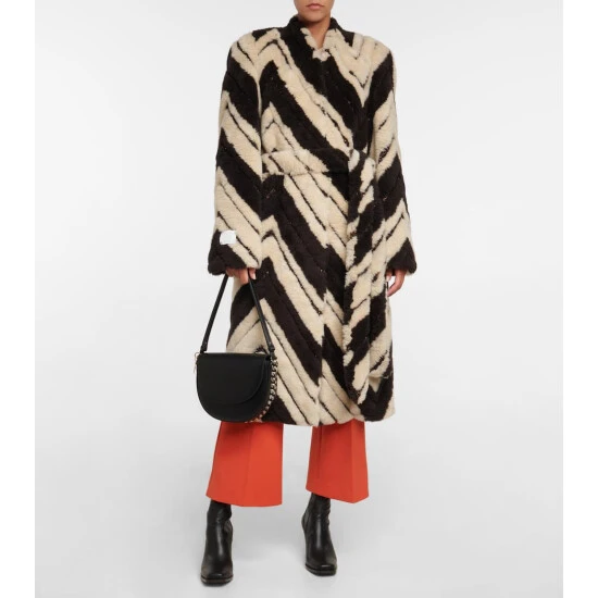 Stella McCartney champions both style and sustainability with this striped coat. The black and white design is made from the brand’s signature Fur-Free-Fur and embellished with gleaming copper and gold elements peaking through the plush fibers.