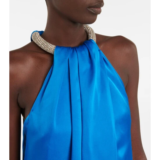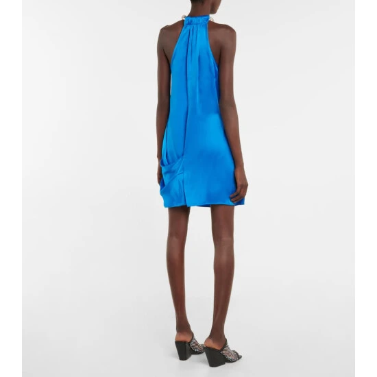 An artfully draped silhouette, this minidress from Stella McCartney has a halterneck that hangs from a crystal-encrusted band.