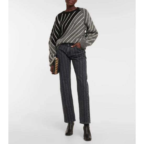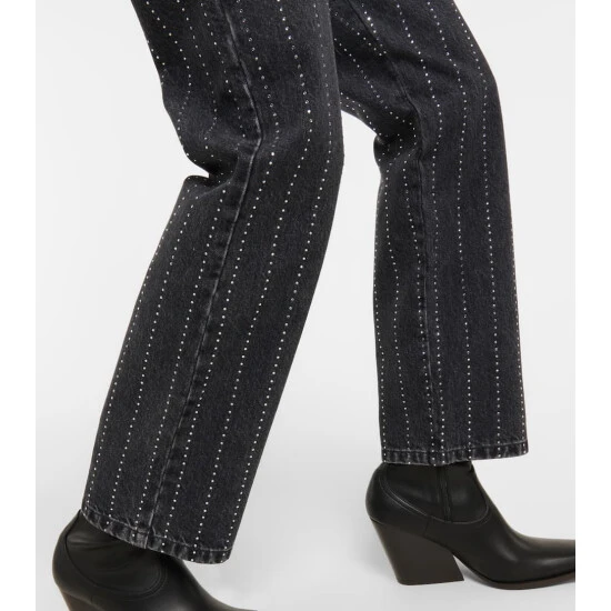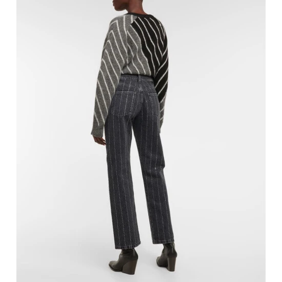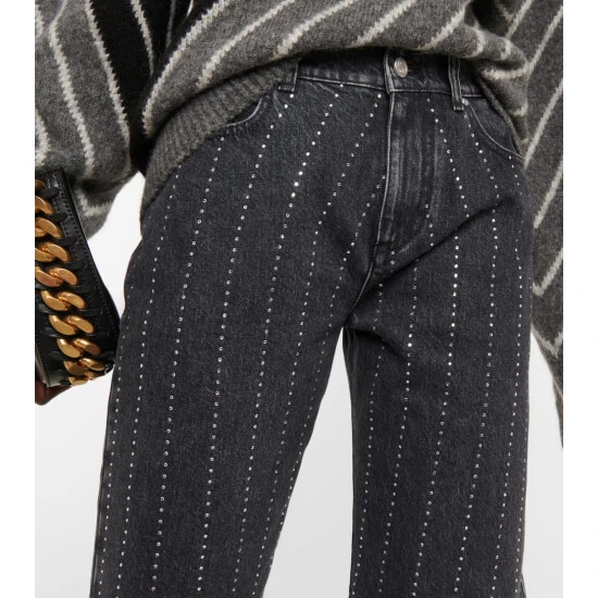 Add a touch of sparkle to everyday looks with these straight-leg jeans from Stella McCartney. Made from organically cultivated cotton denim, the mid-rise style comes in washed black and is adorned with glimmering crystal pinstripes.