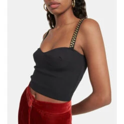This fitted crop top from Stella McCartney is made from stretchy scuba fabric with seam detailing under the bust and embellished shoulder straps. Coordinate it with the matching leggings for a bold off-duty look.