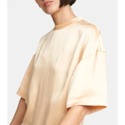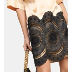 Desk-to-dinner transitioning has never been easier than in this Stella McCartney minidress. Shaped with a crewneck T-shirt-style bodice with dropped shoulders, this relaxed design is distinguished by contrast embroidered paneling.