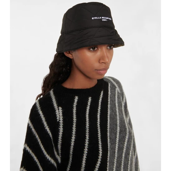 Top off your looks with this retro-inspired bucket hat by Stella McCartney. it’s made from quilted technical fabric and features contrasting embroidery the references the brand’s founding.