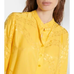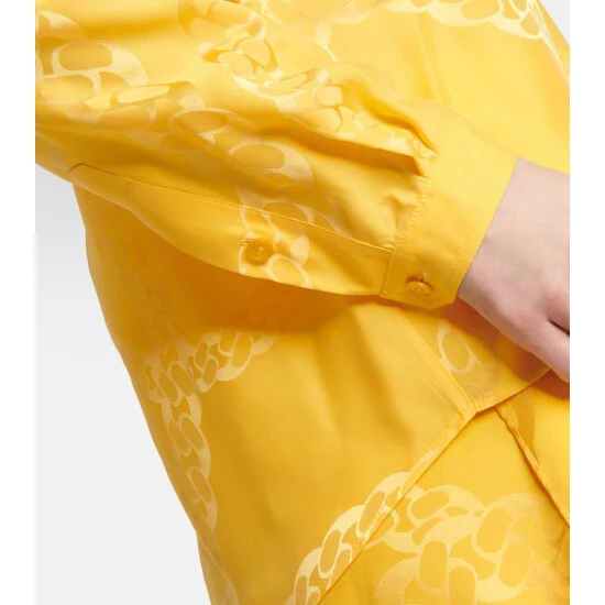 This shirt from Stella McCartney is jacquard-knit from a silk-blend with a glossy finish and showcases a Falabella chain print. This style features a stand collar and a partially buttoned front.