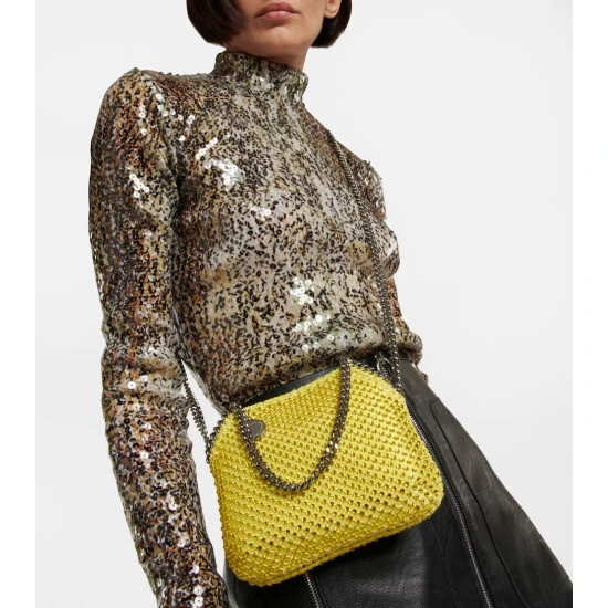 Stella McCartney’s Falabella Mini is the perfect compact-sized tote bag for party season. This style is made from satin with a crystal-embellished set overlay and features the brand’s signature diamond-cut chain.