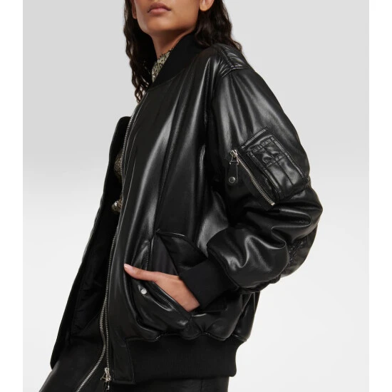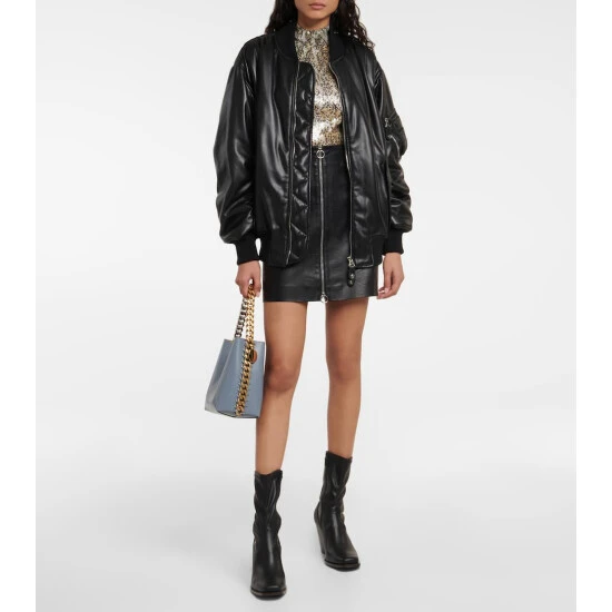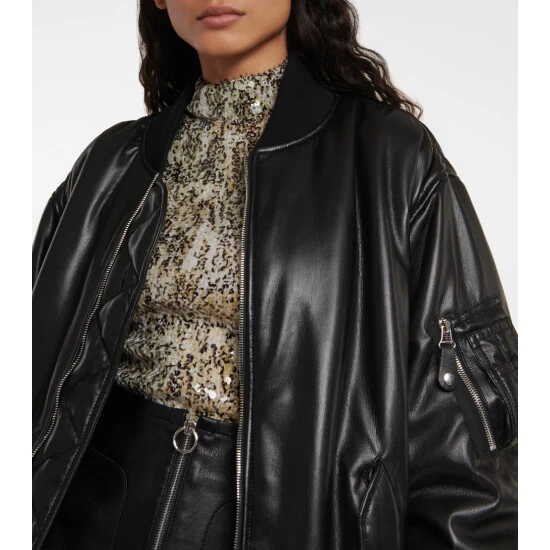 This bomber jacket from Stella McCartney is made from the brand’s signature leather alternative. It has a relaxed fit with dropped shoulders, flap pockets, and ribbed-knit trims.
