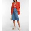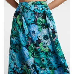 This Stella McCartney skirt is made from airy silk crêpe de chine and printed with large blue florals. It’s tailored with stitched paneling that produces soft pleats and a handkerchief hem.