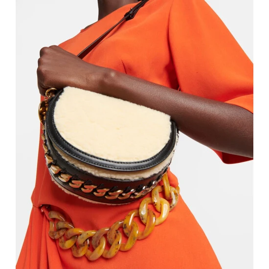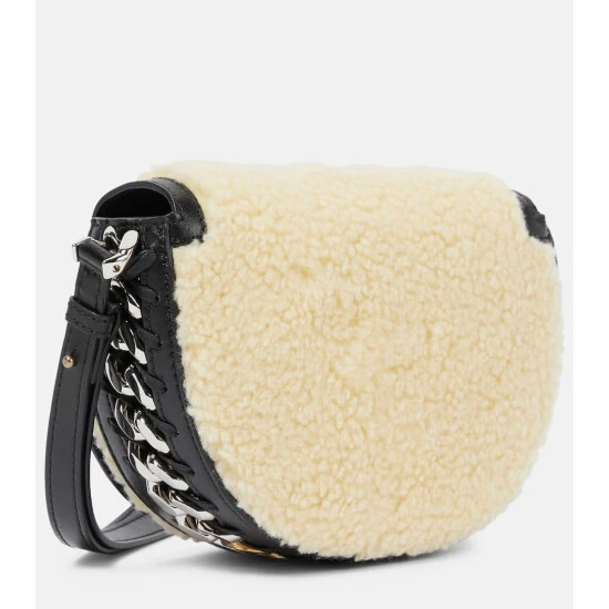Stella McCartney updates the iconic Frayme silhouette as a shoulder bag. Made from faux fur, the medium iteration is embellished with golden and silver-tone chainlink hardware and secures with a magnetic flap.