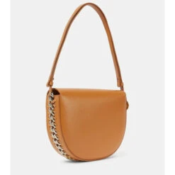 The Frayme Medium shoulder bag is made from Alter Nappa, Stella McCartney’s signature faux-leather alternative. Securing with a magnetic fold over flap, tan yellow design is framed with a label-signature gold and silver-toned chain.
