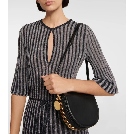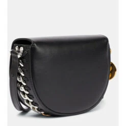 The Frayme Small black crossbody bag is made from eco-friendly Alter Nappa, Stella McCartney’s faux leather alternative. The hemispherical style is underpinned with diamond-cut chainlink hardware and secures with a magnetic flap.