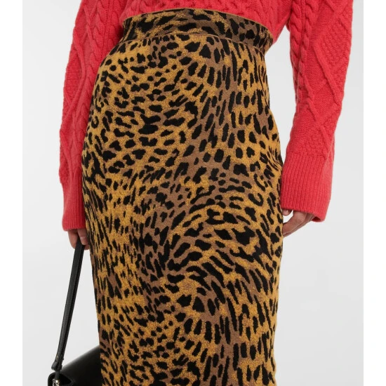 This pencil skirt from Stella McCartney features a leopard-jacquard motif. It has a fitted silhouette, a high-rise waist and a midi hem.