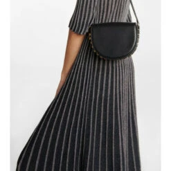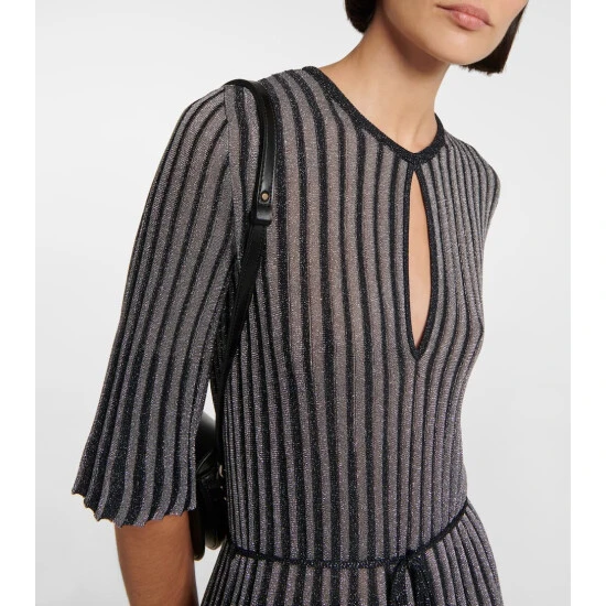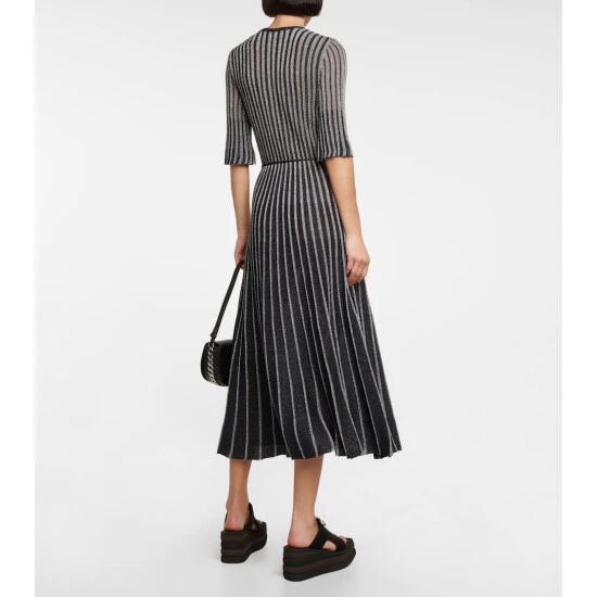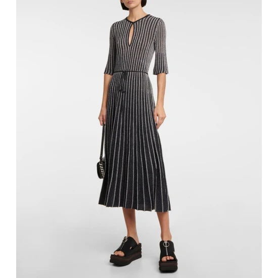 Made from a striped knit fabric, this midi dress from Stella McCartney has a keyhole neckline, cropped sleeves and a gently pleated skirt.