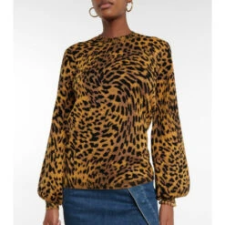 This sweater from Stella McCartney is knitted in Italy to a relaxed fit with large sleeves and is entirely covered in a beige and black leopard print.