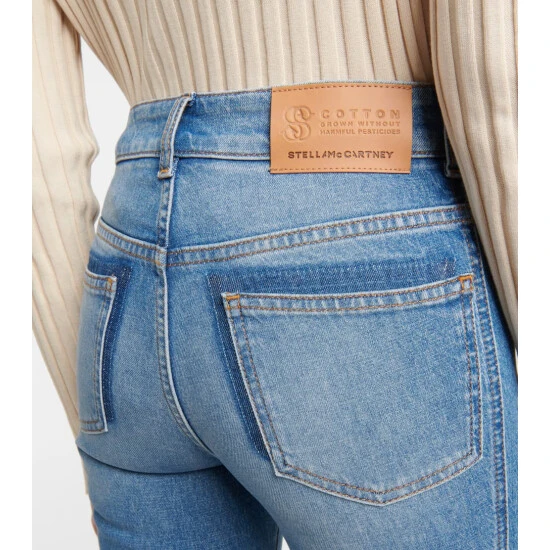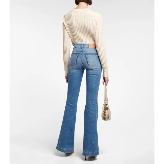 Stella McCartney devotees will love donning these chic flared jeans, featuring logos down the sides. Arriving with a mid-rise waist, the style comes in a medium-blue wash and has shaded details on the back pockets.
