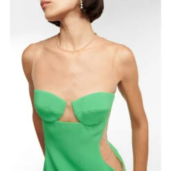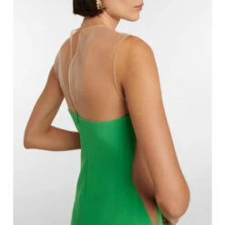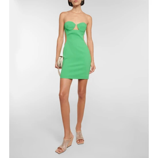 The party season calls for this vibrant minidress from Stella McCartney. Made from scuba crêpe, this fitted design features sheer mesh panels and a defined bustier neckline.