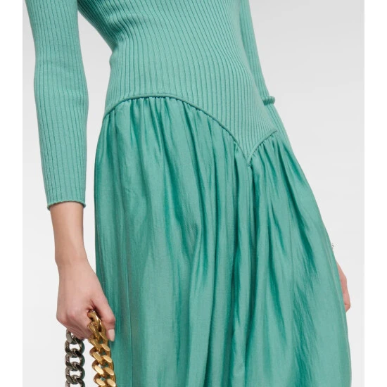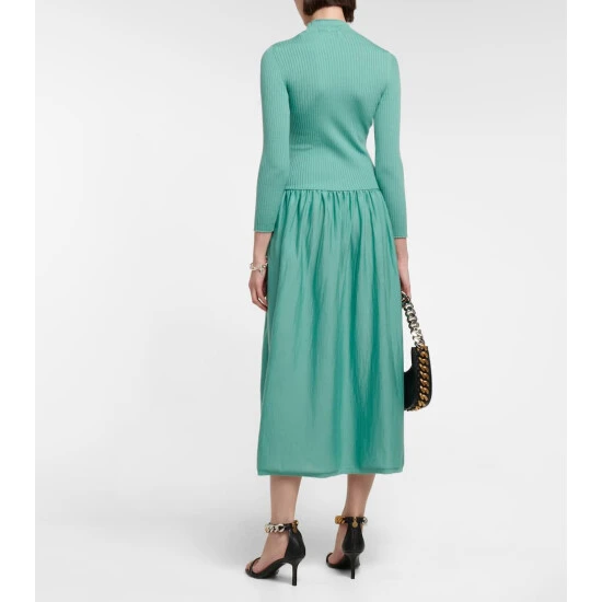 Make a statement in this vibrant maxi dress from Stella McCartney. Made from virgin wool, the long-sleeve style has a body-hugging ribbed-knit bodice that sees a dropped waist extending into a billowing skirt.