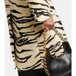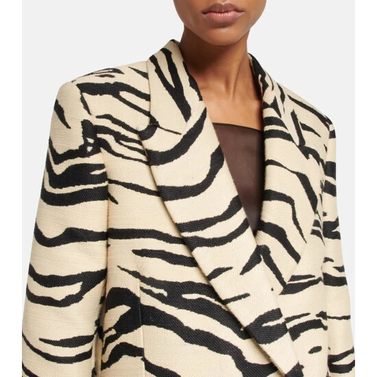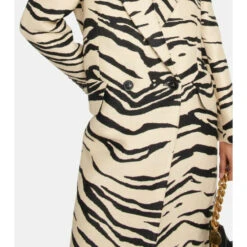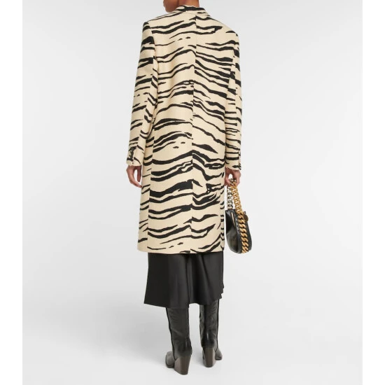 This coat from Stella McCartney can be described in two words: bold and beautiful. This double-breasted piece is printed is designed for a loose fit and falls just below the knee.