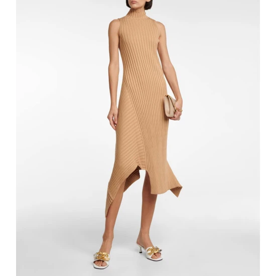 Made from a ribbed cotton knit, this sleeveless midi dress from Stella McCartney has a turtleneck and an asymmetric hem.