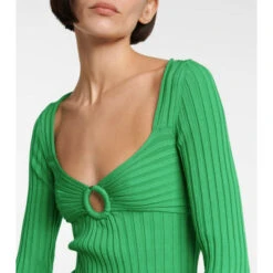 This Stella McCartney sweater is made from a lightweight rib-knit fabric in green, has a figure-hugging fit to highlight the figure, and is finished with a clear O ring detail at the neckline.