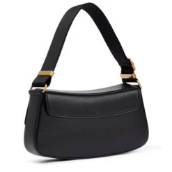 Stella McCartney’s S-Wave shoulder bag has a curved baguette-style shape. Made from the brand’s signature leather alternative called Alter Mat, this design is topped with a gold-toned monogram plaque.