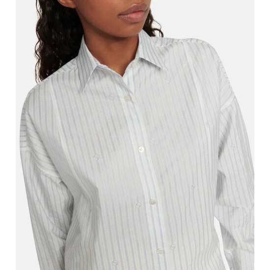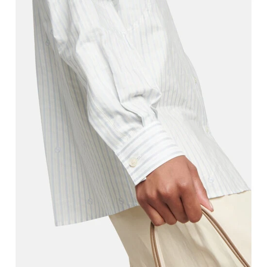 This oversized shirt from Stella McCartney features the brand’s S-Wave motif atop cotton jacquard stripes. This classic silhouette is finished with a point collar, long sleeves, and buttoned cuffs.
