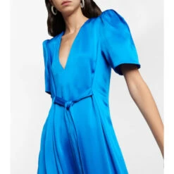 Update your evening wear edit with this elegant satin midi dress from Stella McCartney. The V-neck style has puffed sleeves and a self-tie belt to accentuate the waist.