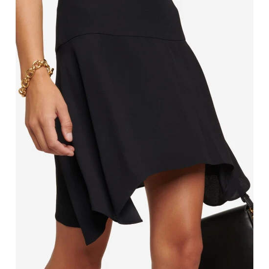 This black midi skirt from Stella McCartney is a wardrobe chameleon that can go from desk-to-dinner, casual to formal. It’s made from satin with a wide waistband and a handkerchief hem.