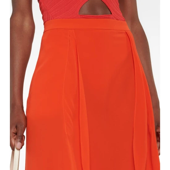 This vibrant midi skirt from Stella McCartney evokes a sensual feminity. Cut from fluid silk to a slightly flaired silhouette, the high-rise design features a unique scalloped hem.
