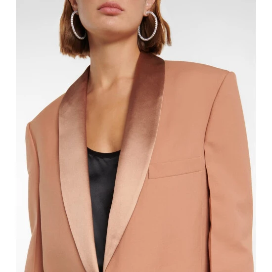 Made from wool, this blazer from Stella McCartney has a single-breasted front with a full satin lining that’s mirrored by its narrow lapels.