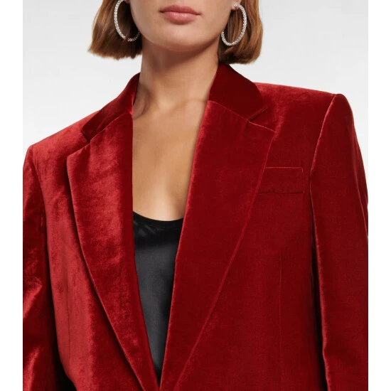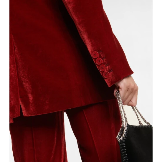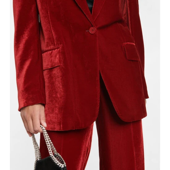 Invest in glamorous suiting that never goes out of style like this blazer from Stella McCartney. Designed for a loose fit, it’s tailored from plush velvet with a single-breasted closure, notched lapels, flap pockets, and structured shoulders.