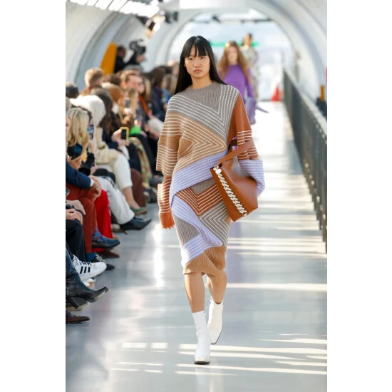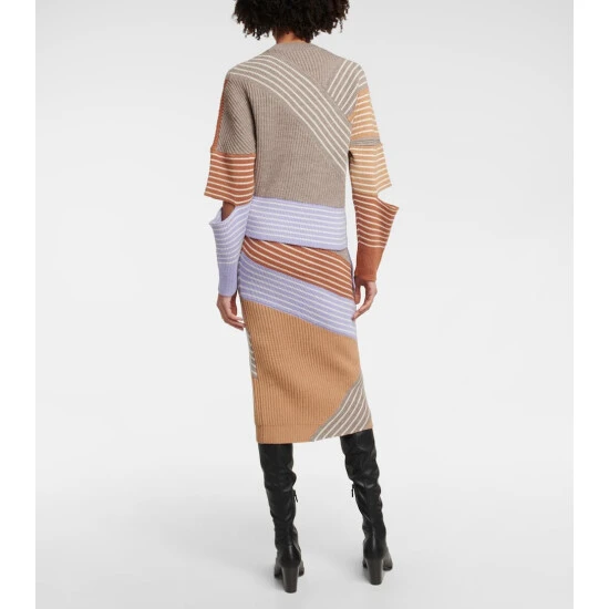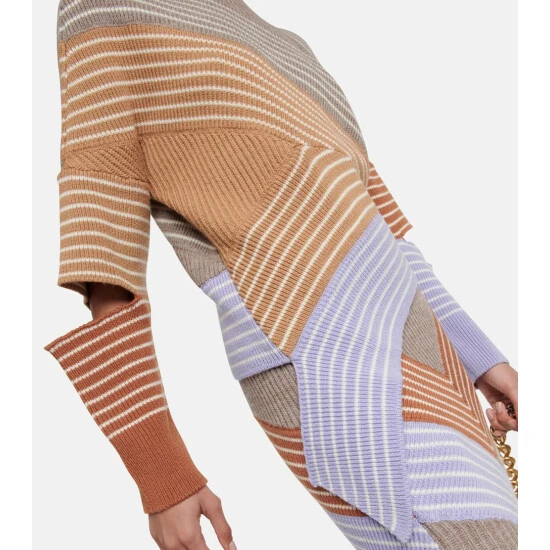 Stella McCartney presents a contemporary take on knitwear with this striped sweater from the runway. Knitted from virgin wool, this piece has an asymmetric shape, cutouts on the sleeves, and a ribbed texture.