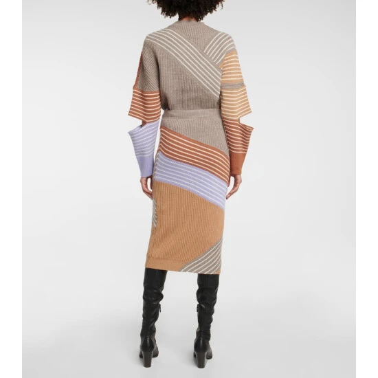 Look to Stella McCartney for high-quality materials and fresh designs, such as this midi skirt. It’s made from ribbed-knit wool to a fitted silhouette and features a striped geometric pattern throughout.