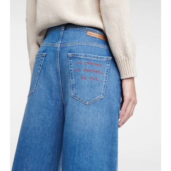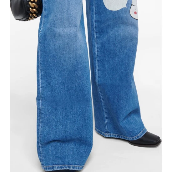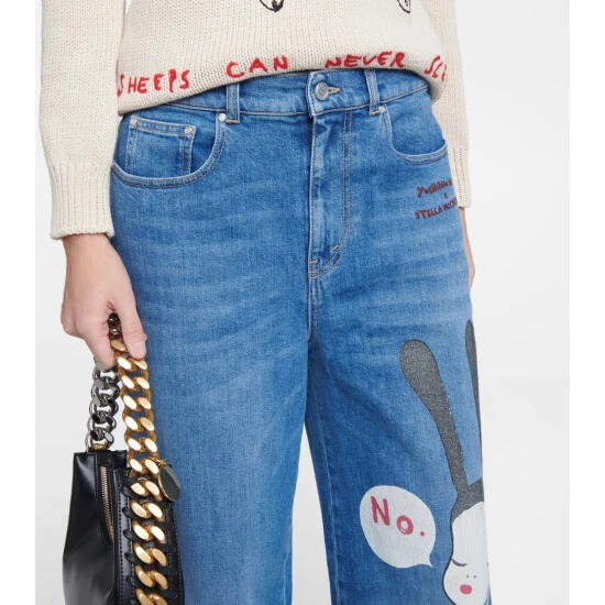 From the Stella McCartney x Yoshitomo Nara collection, these wide-leg denim jeans are decorated with collaborative logo detailing, Nara’s iconic ‘Little Black Bunny’ motif, and mischievous ‘No’ lettering.