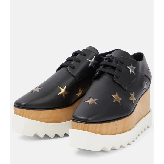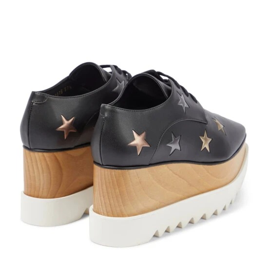 Stella McCartney’s signature Elyse Derby shoes are made in Italy from the brand’s faux leather. This black style features a multi-layered platform and star embellishments.