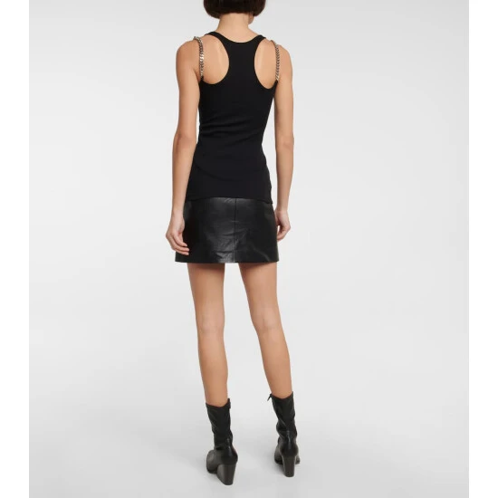 Stella McCartney elevates the humble jersey tank top with Falabella chain straps. This style is finished with the 2001 logo, which references the brand’s launch date.